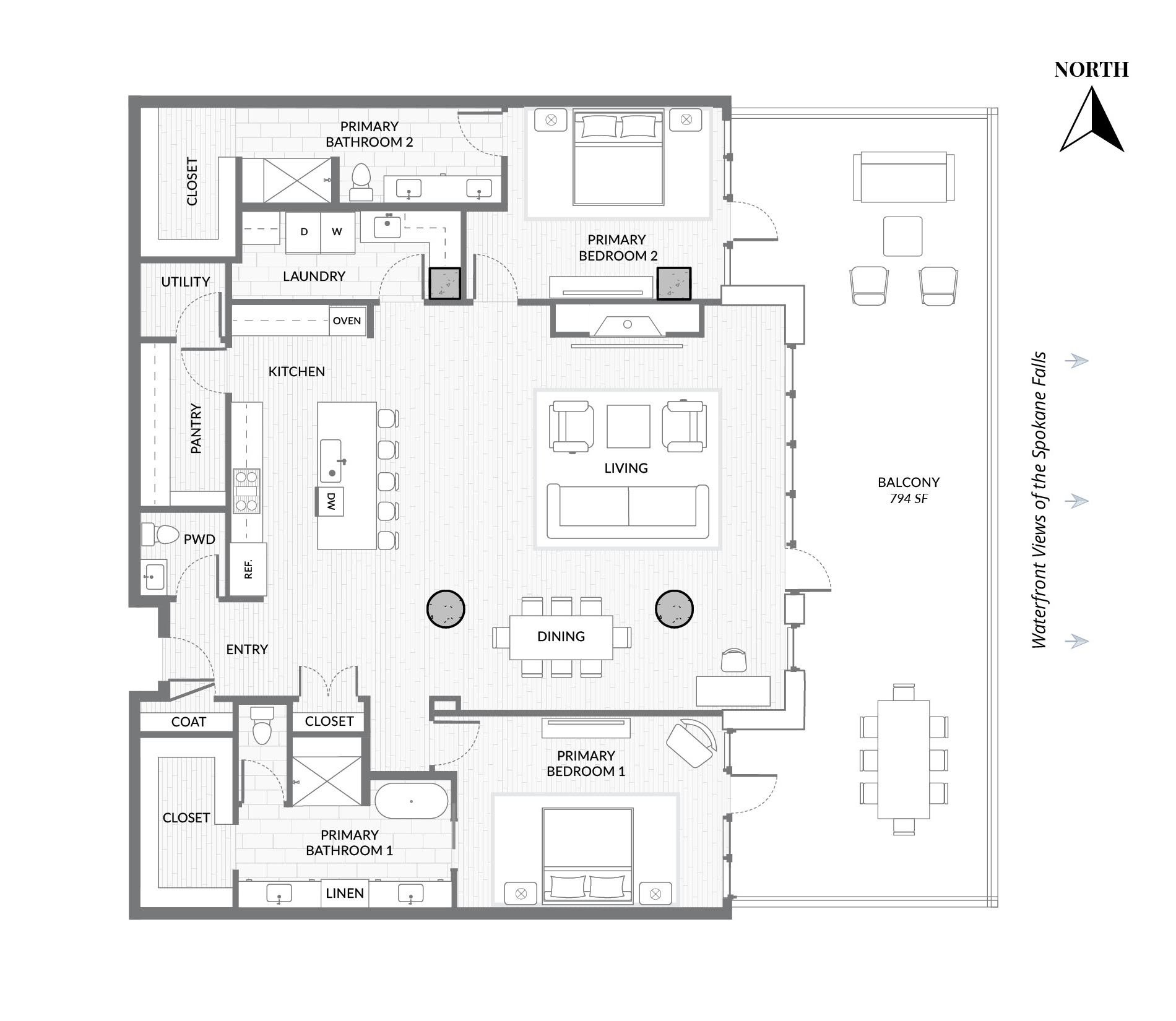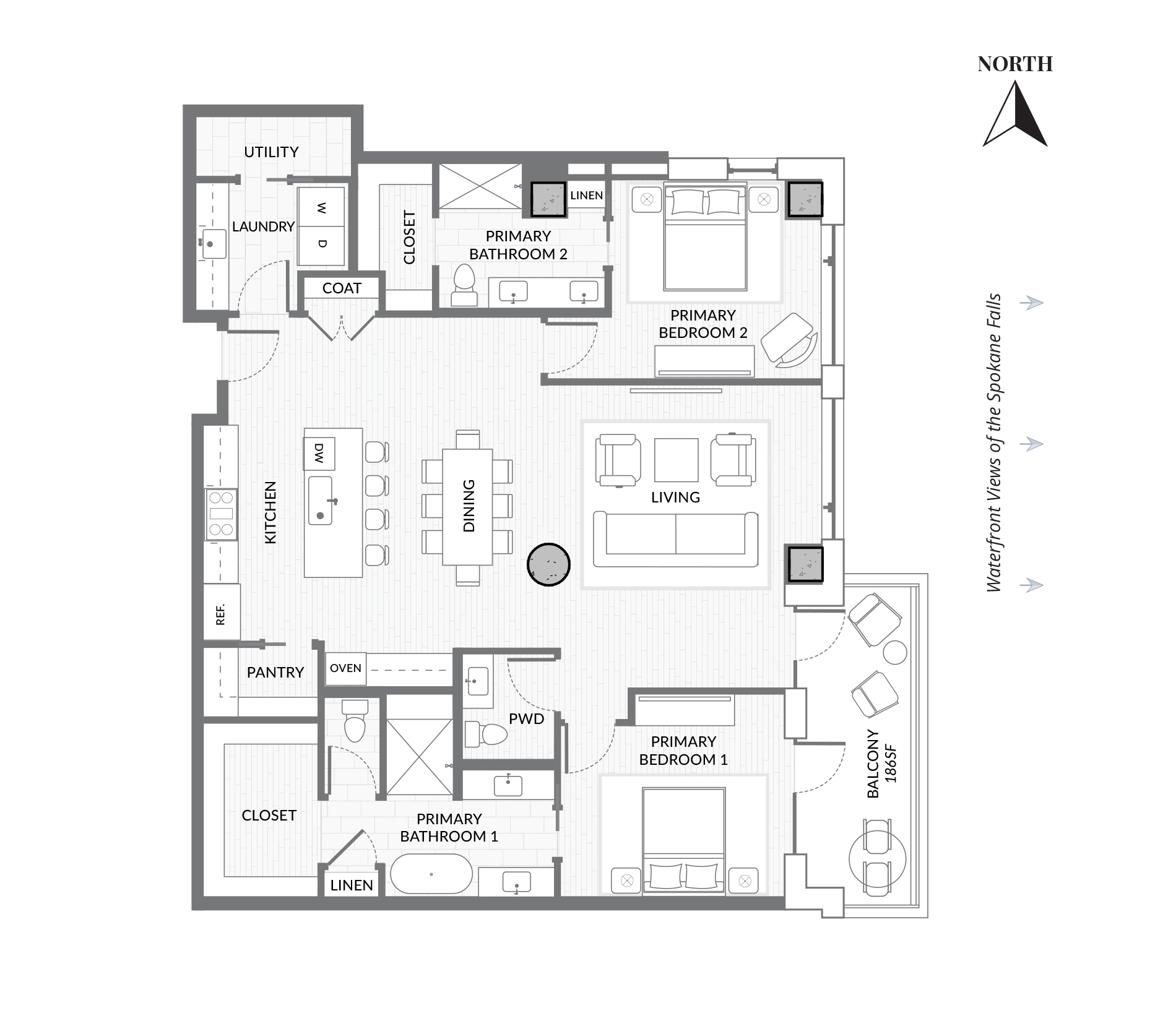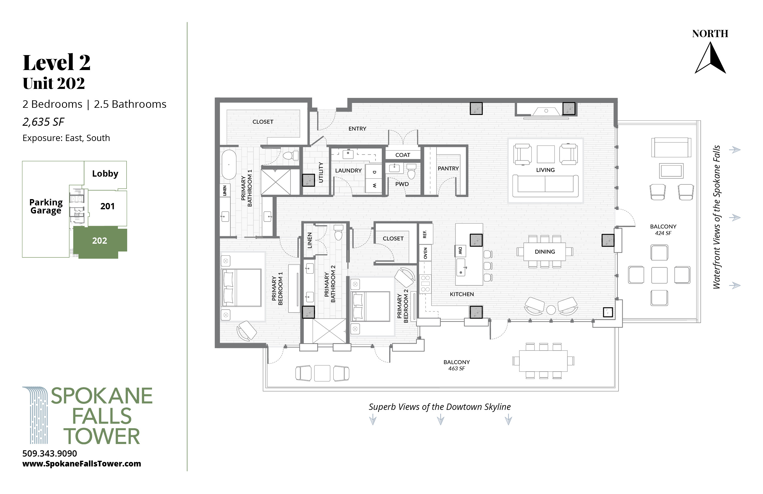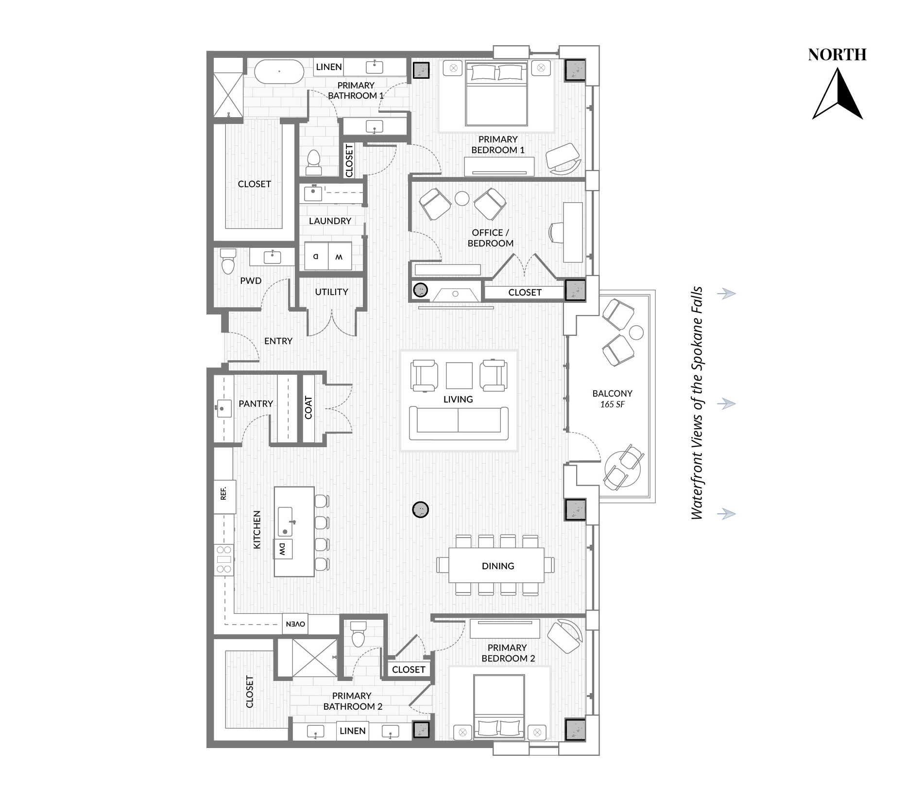 We are thrilled to unveil the floorplans for the Spokane Falls Tower! This impressive 12-story tower will feature 48 meticulously designed homes, offering a diverse selection of living spaces. The building will include 6 studios, 12 one-bedroom units, 23 two-bedroom units, and 6 three-bedroom units, catering to a variety of lifestyles. With homes ranging from 524 square feet to an expansive 3,144 square feet, there’s a perfect space for everyone to call home.