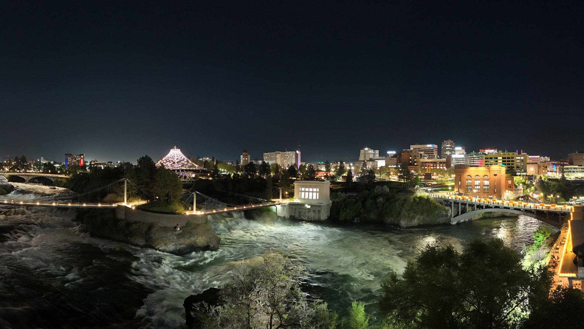 Spokane Falls Tower sits at a rare and powerful point along the river. From this vantage, the presence of the Falls is immediate and unmistakable. By day, the water brings motion and sound to the scene; by night, the river and Falls glow against the city lights. The view is dynamic, ever-changing, and uniquely Spokane.
